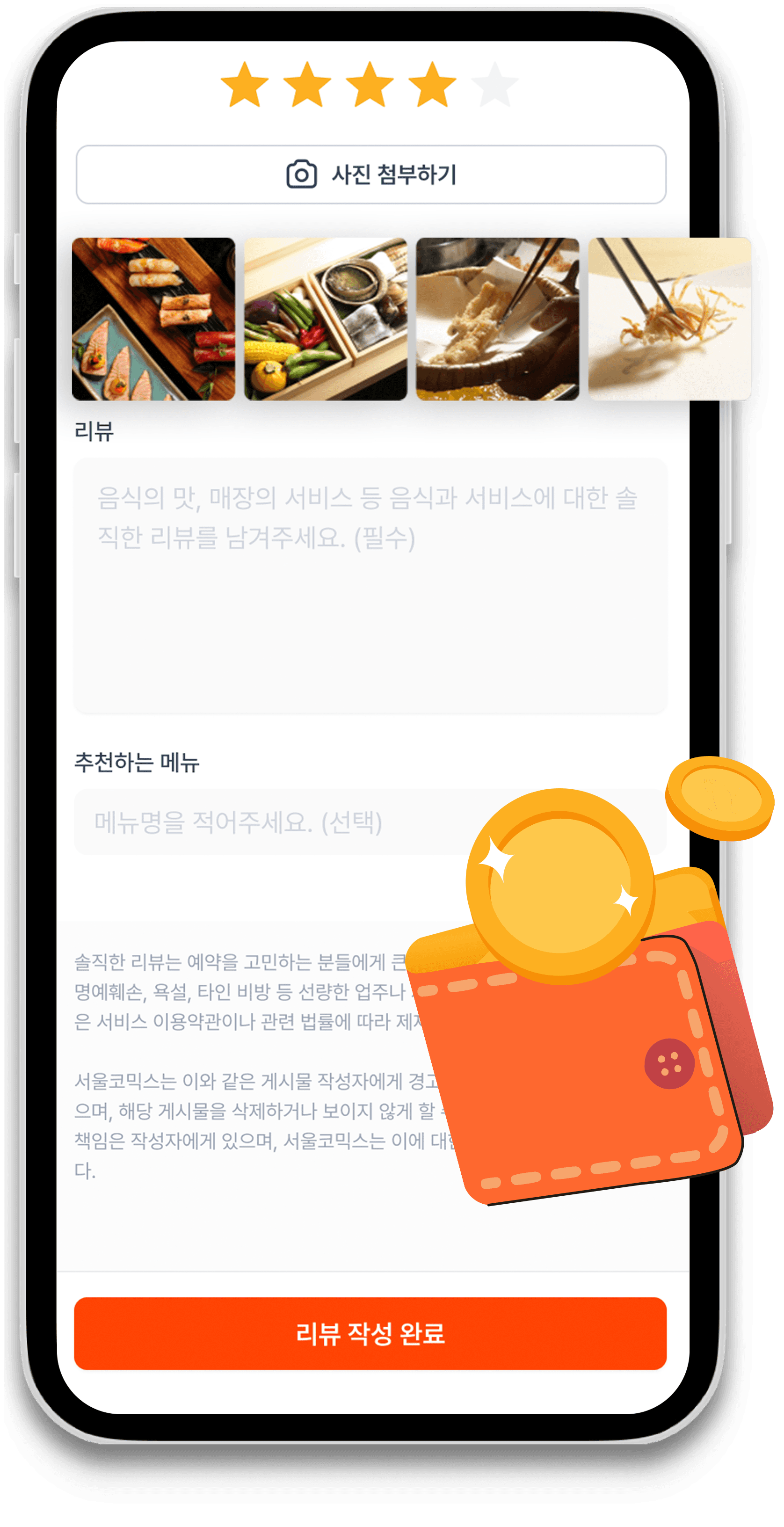 맛집 리뷰 쓰고 포인트를 받으세요!